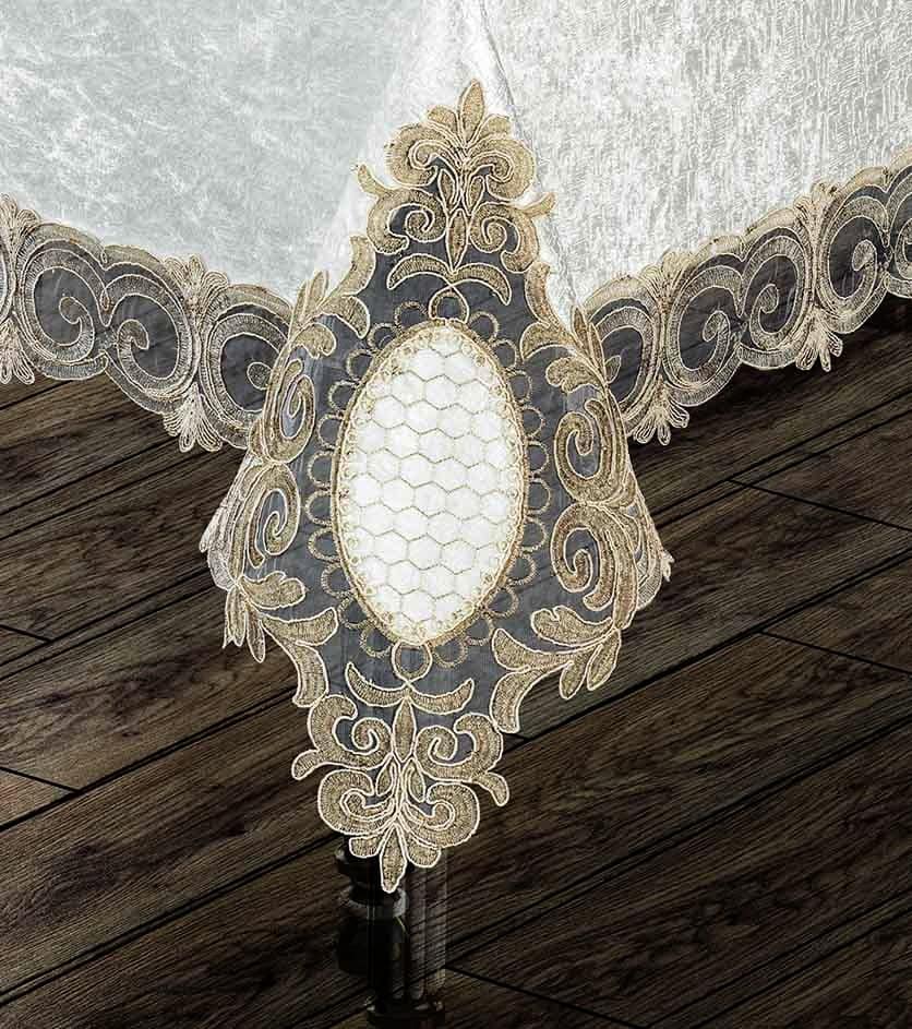 Güpür detayları, masa örtüsüne pratik bir zarafet katıyor. Özel desenlerle uyum içinde olan güpür detayları, masa örtüsünü sadece bir örtü değil, masanızın görsel bir şölenine dönüştürüyor.